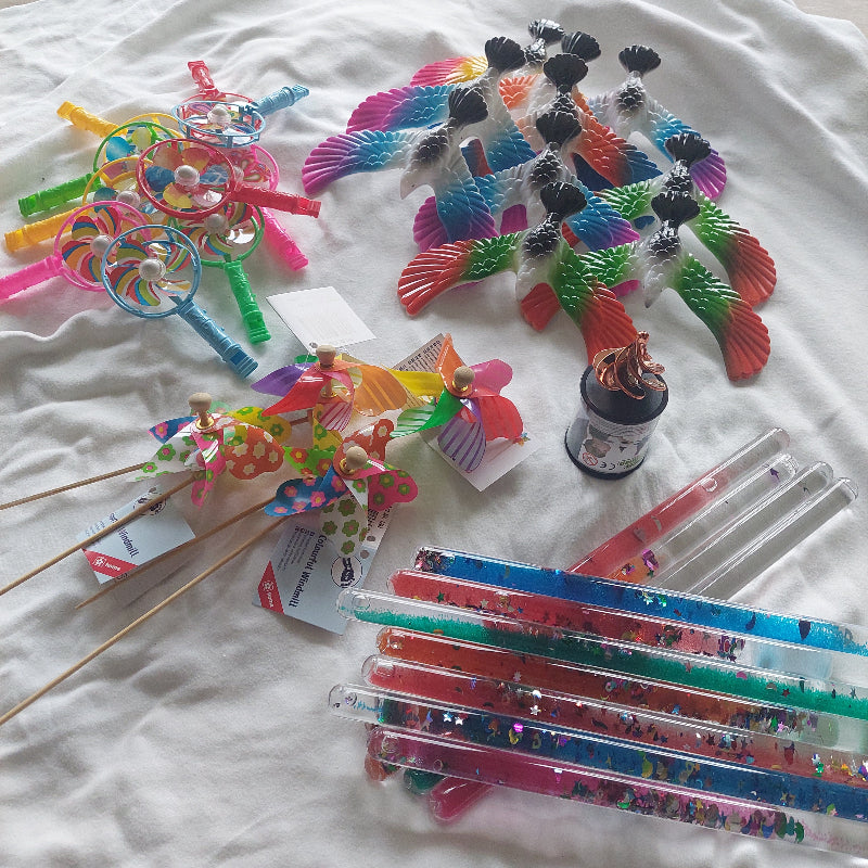Afleidingsset Wind met vingervogels, toverstaven en windmolens voor gebruik bij vaccinatie