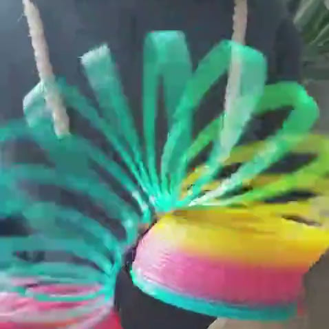 What a sight to behold: this large, 15cm rainbow stair runner meanders confidently down the stairs or table. Its weight and size make it a true two-handed activity. In your hands, it feels like a balancing act: working together, guiding, and feeling what you're doing.